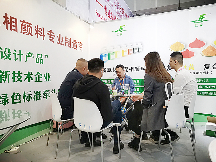 展會上,湖南巨發(fā)顏料位于16A03展位號,自開展首日就收獲了強大人氣。巨發(fā)顏料研發(fā)的“光擴散微球”、“高性能環(huán)保無機顏料”、“5G通訊LDS助劑”等款新產(chǎn)品首發(fā)引關(guān)注,吸引了眾多優(yōu)質(zhì)經(jīng)銷商、媒體朋友及觀展客戶的駐足參觀與洽談,有效提升了企業(yè)品牌形象和知名度。