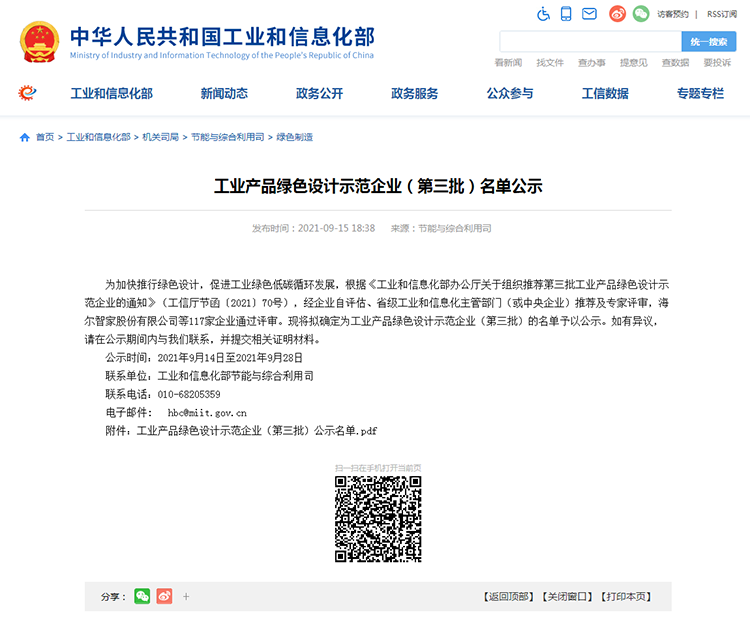 圖:來(lái)自工信部工業(yè)產(chǎn)品綠色設(shè)計(jì)示范企業(yè)(第三批)公示名單截圖