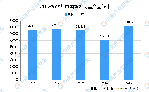 塑料是高分子化合物加入適當(dāng)填料和其他添加劑,經(jīng)加工成型的塑性材料或固化交聯(lián)形成的剛性材料。樹脂的本色大都是白色半透明或無(wú)色透明的,需要根據(jù)制品的應(yīng)用要求進(jìn)行著色處理,以起到色別標(biāo)識(shí)、美觀的作用。數(shù)據(jù)顯示,中國(guó)塑料制品產(chǎn)量由2011年的5474.4萬(wàn)噸增長(zhǎng)至2019年的8184.2萬(wàn)噸,年均復(fù)合增長(zhǎng)率為5.2%。
