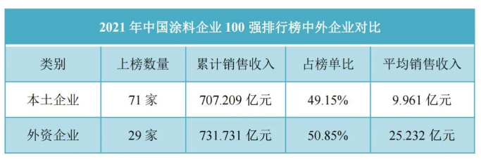 【聚焦】2021中國涂料企業(yè)100強榜單揭曉:市占率提升/44家企業(yè)排名下滑
